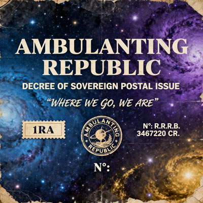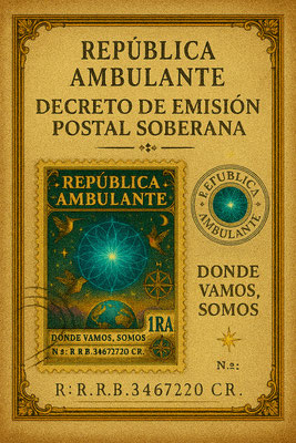 Se certifica: Que el portador posee un sello postal soberano auténtico de edición limitada de la República Ambulante, emitido bajo la autoridad del Decreto de Emisión Postal Soberana.