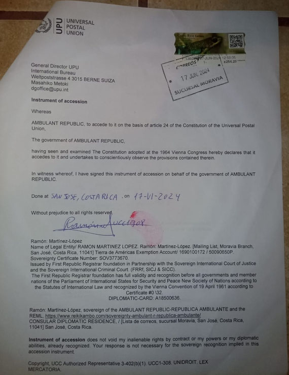 Signed: _______Ramón:Martinez-López____________________ (Authorized Officer of the Sovereign Postal Authority)